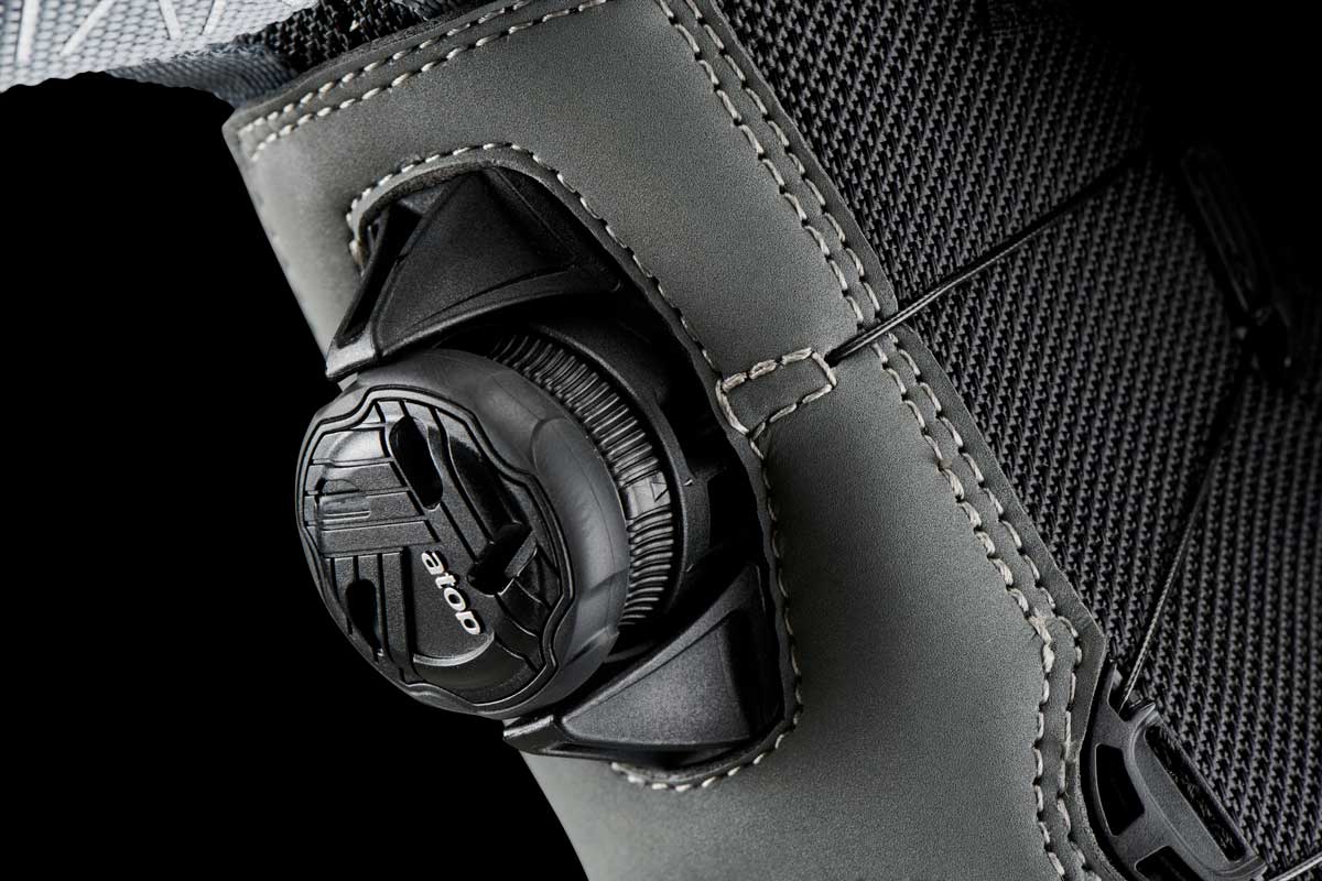 – Sistema de ajuste rápido. Colocado en la parte trasera de la bota, está sujeto por dos agarres que protegen el carrete de los choques.