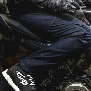 We all know that sudden urge to ride a motorcycle, whether to go to work or to treat ourselves to a daily dose of freedom. The D03 is a simple and effective motorcycle jean that will protect you on each of your outings. It is equipped with D3O® protectors on the hips and knees – the most efficient on the market – and an aramid fibre reinforcement on the seat. Its tapered cut, designed by our designers for everyday use, ensures comfortable wearing, in a sober style.