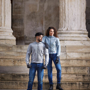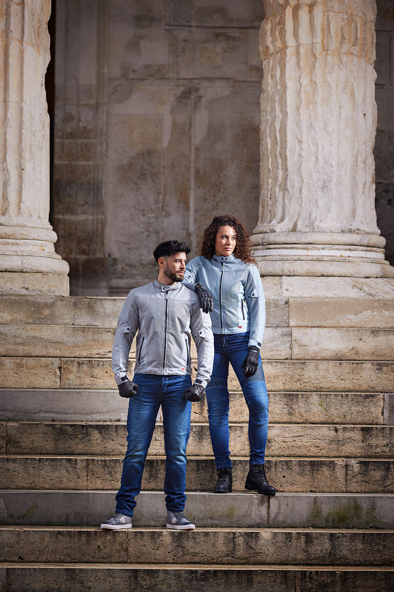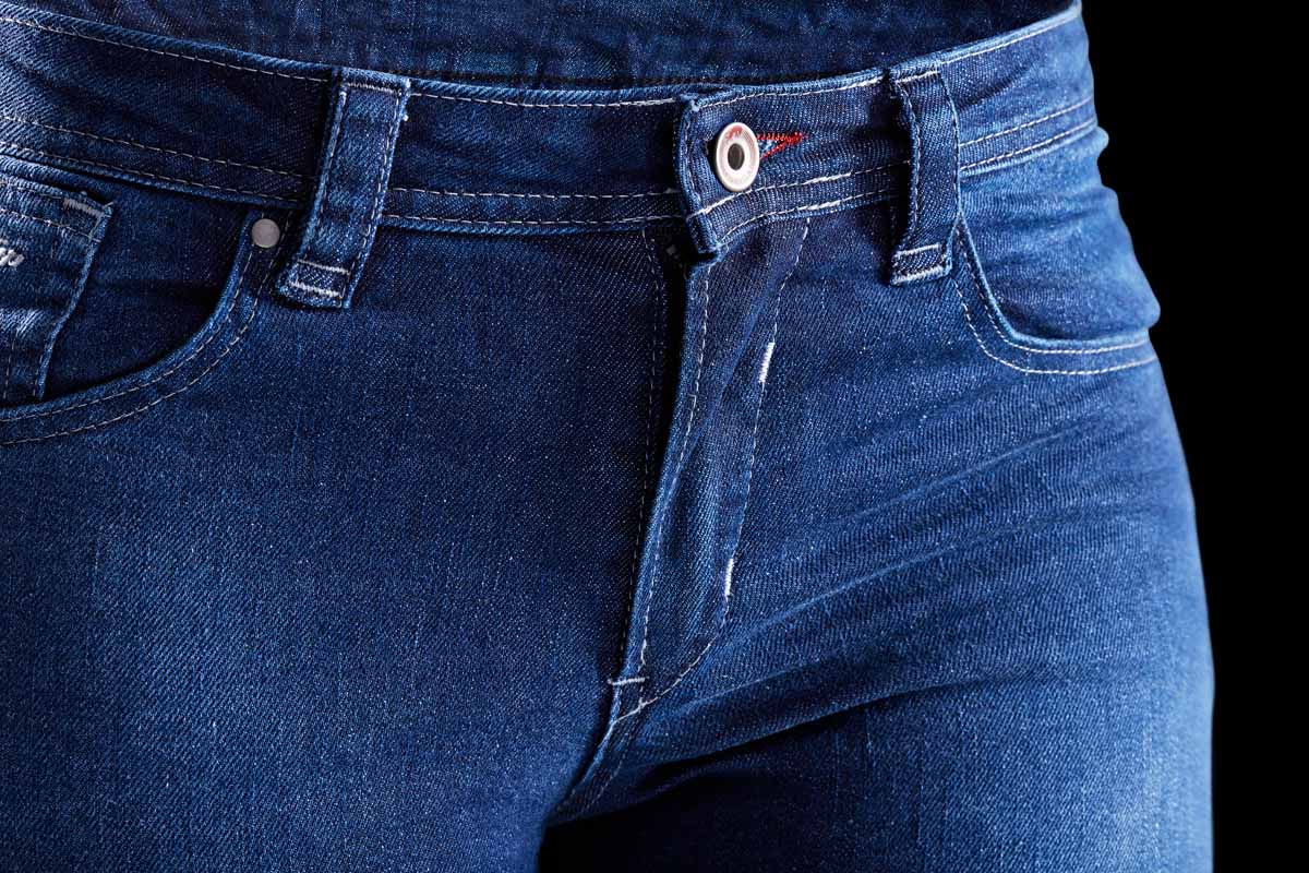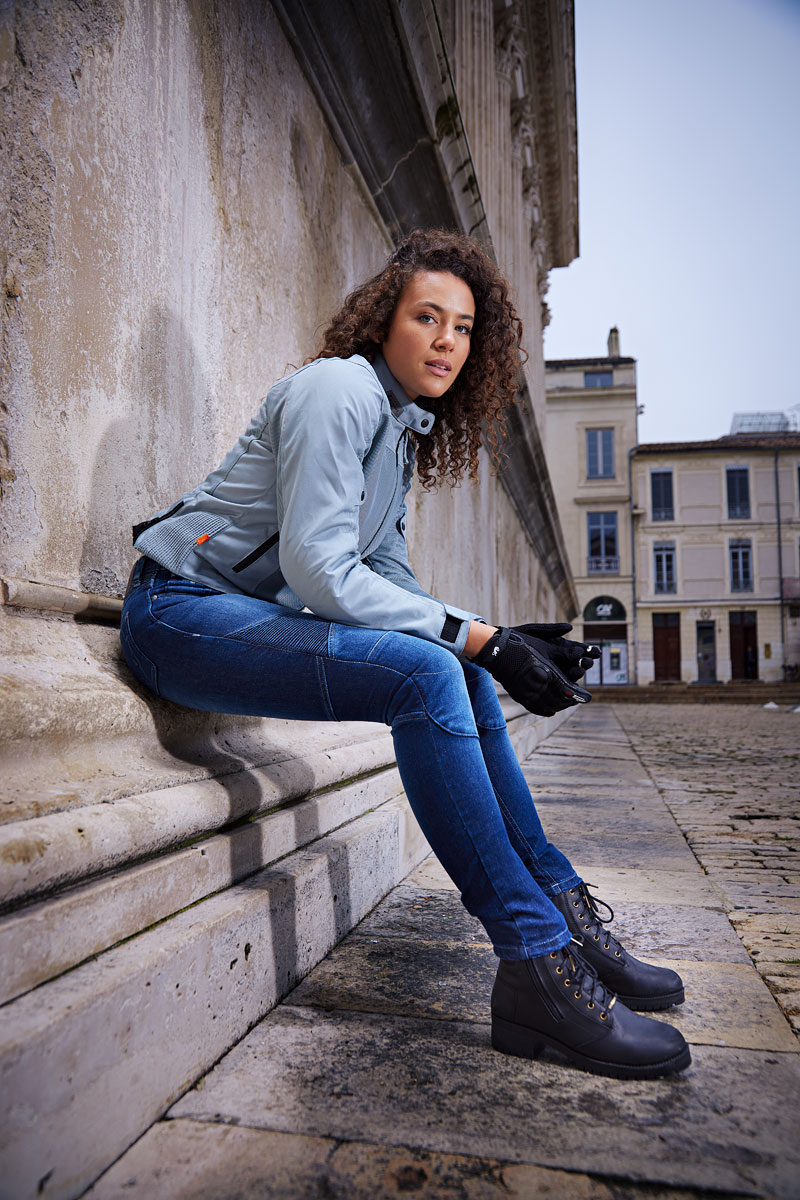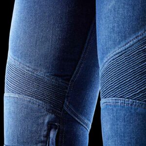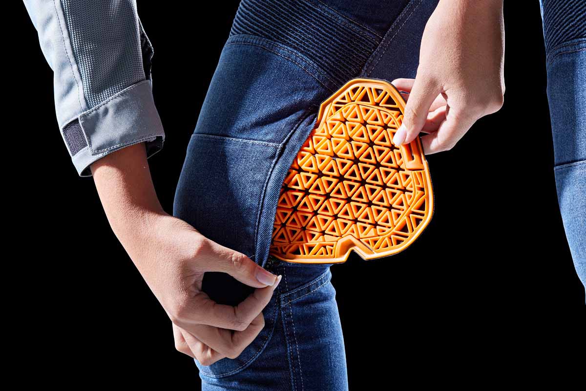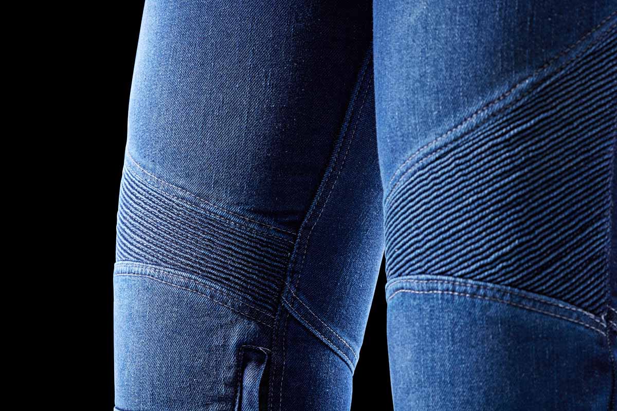 – La zona elástica por encima de las rodillas procura una comodidad óptima en moto y un estilo inconfundible.