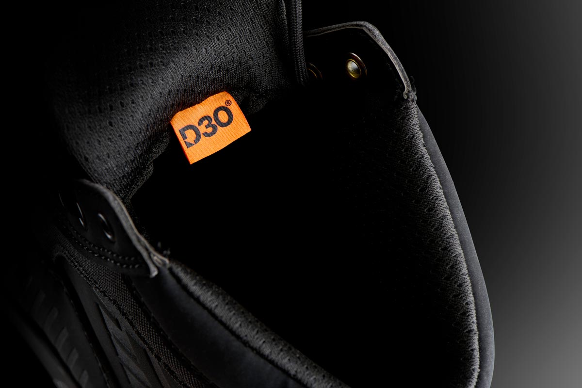 – El diseño ascendente de las Sacramento D3O® proporciona una sujeción y protección suplementarias de los tobillos del conductor de moto.